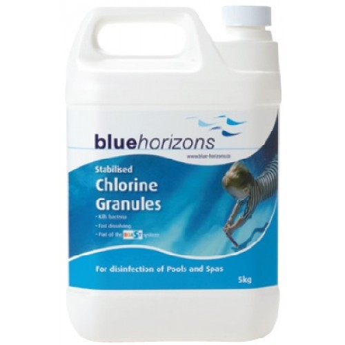 Blue Horizons Stabilised Chlorine Granules are multifunctional granules that provide dose rate flexibility, a fairly neutral pH value, and chlorine stabilisation. They now also include clarifiers and extra oxidisers to help improve water quality and clarity.