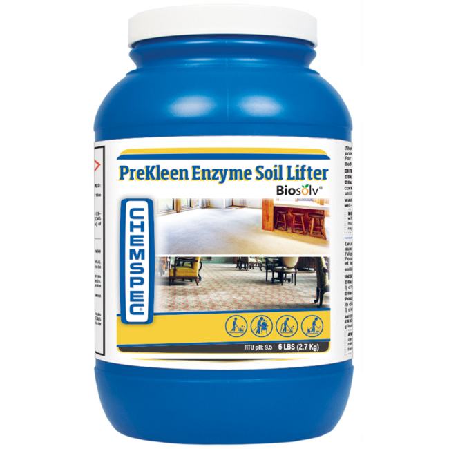 PreKleen Enzyme Soil Lifter with Biosolv, prespray, spotter and booster removes oil-based spots and stains. Excellent for use on upholstery ? no scrubbing required. Boosted with Biosolv citrus additive. Prod