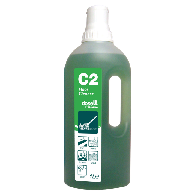 Clover 122 C2 DoseIT Floor Cleaner is a neutral, green floor cleaner which is suitable for use on all hard floors. When applied, C2 is low foaming and leaves a fresh, lemony fragrance after use. Available in a 1 litre dosage control pack.