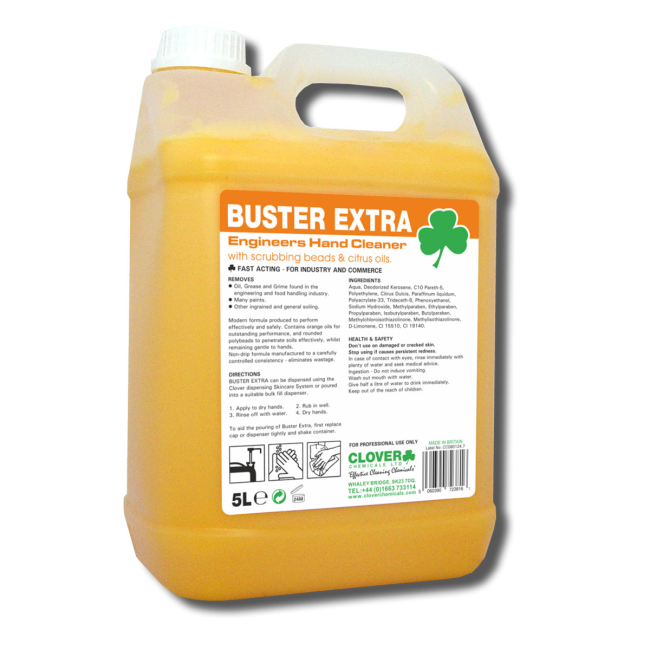 Clover 415 Buster Extra Engineers Hand Cleaner is an effective beaded hand cleaner with a citrus-oil base for extra strength and mildness. An orange scented hand cleaner containing poly-beads for added cleaning power, Buster Extra has been manuf