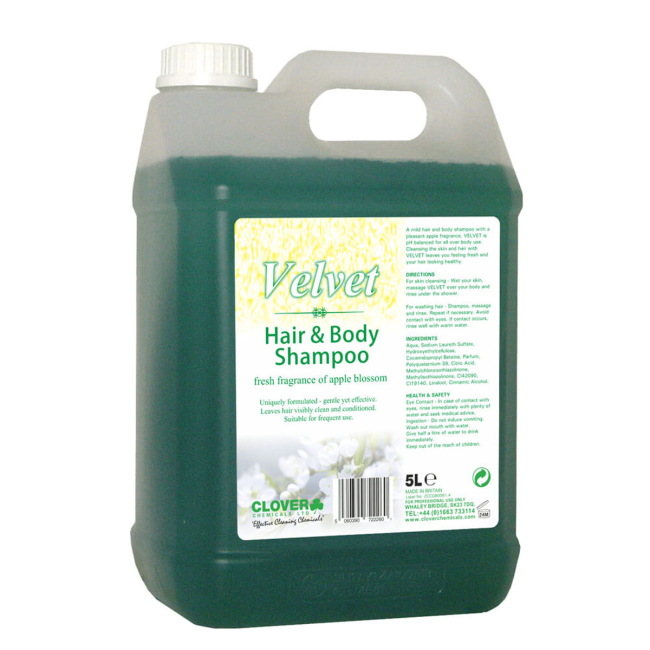 Clover 416 Velvet Hair & Body Shampoo is suitable for use on all hair and skin types as a hair shampoo, bubble bath, shower gel and all over body wash. Ideal for health clubs, sport centres, hotel rooms, changing rooms and shower areas